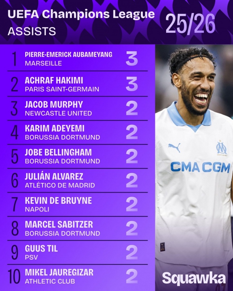10月23日讯 本赛季欧冠职业联赛 阶段已战罢3轮,Squawka统计了到目前为止的助功 榜,苏超联赛回放免费观看马赛前场球员奥巴梅扬和巴黎后场球员阿什拉夫均是3次助功 ,分列前二。