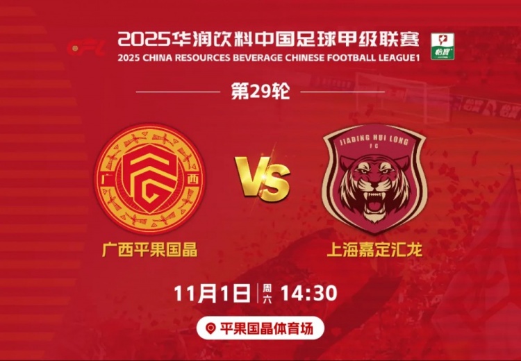11月1日14:30,2025华润饮料中甲职业联赛 第29轮,广西平果国晶将迎来本赛季最后一个主场作战 赛事 ,对阵排名第12位的上海嘉定汇龙。这不仅是关键的保级大战,更是一场捍卫平体、为荣誉而战的终极较量。