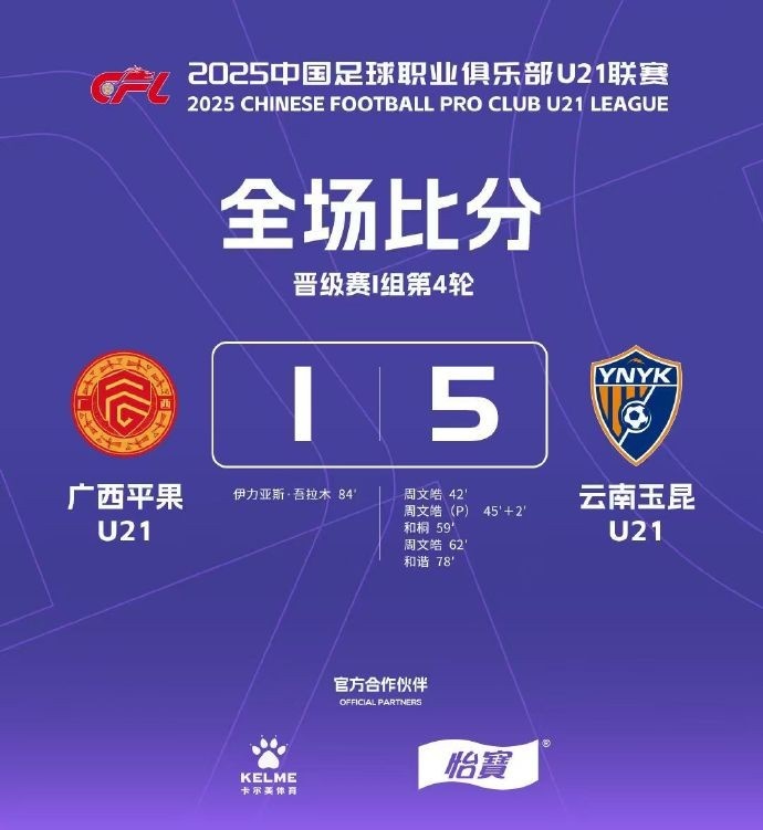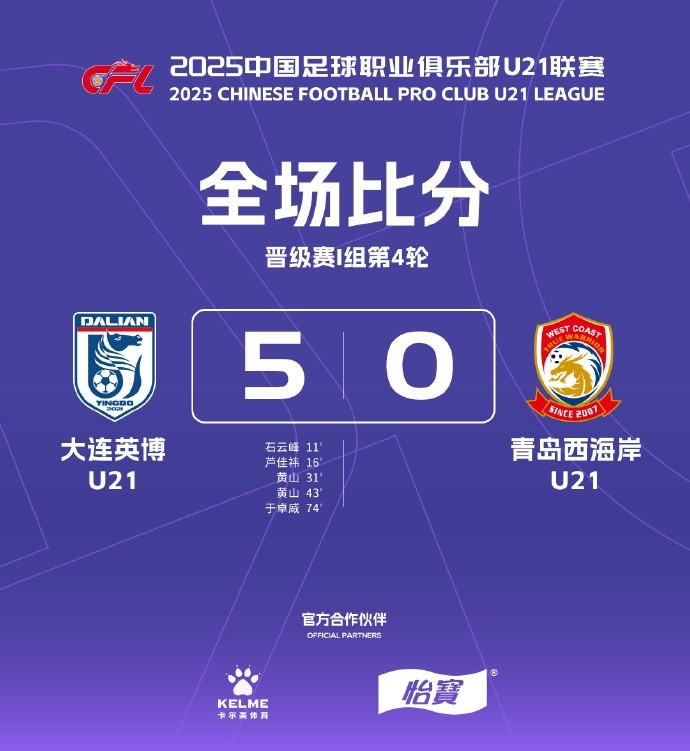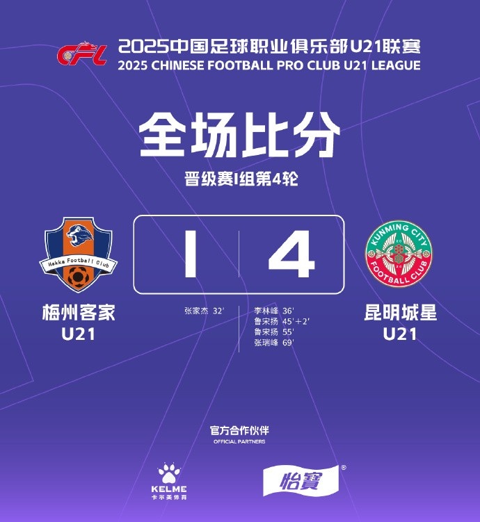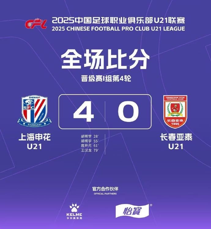 9月22日讯 2025中国古代足球 青少年精英职业联赛 (U21组)晋级下一轮 赛I组第4轮,上海申花4-0战胜长春亚泰,广西平果1-5不敌云南玉昆,苏超在线直播高清视频无插件梅州客家1-4不敌昆明城星,大连英博5-0大胜青岛西海岸。