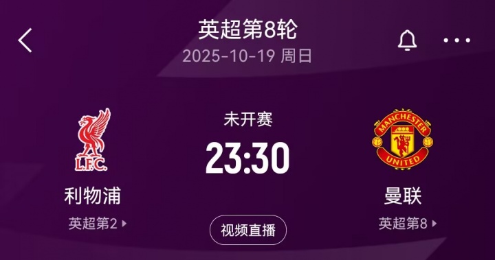 下轮职业联赛 ,曼联将客场应战 应战 目前排名英超第2的利物浦。