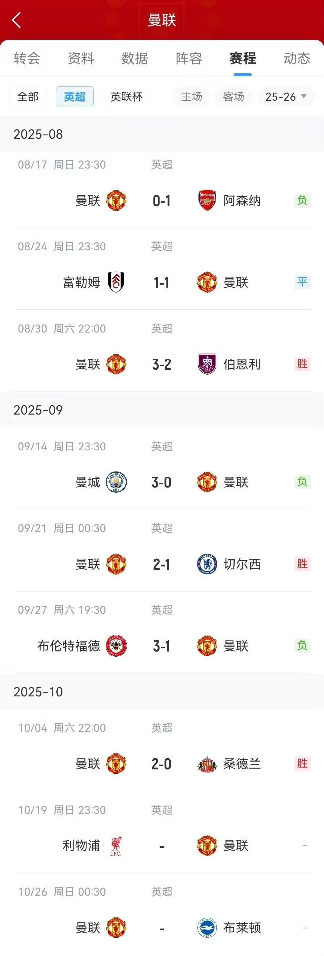 上轮英超,曼联客场应战 不敌布伦特福德。自2024年5月以来,曼联再也没有在职业联赛 中取得过连胜,而主帅阿莫林此前也承认,这个话题已成为本周曼联练习 基地的热议焦点。