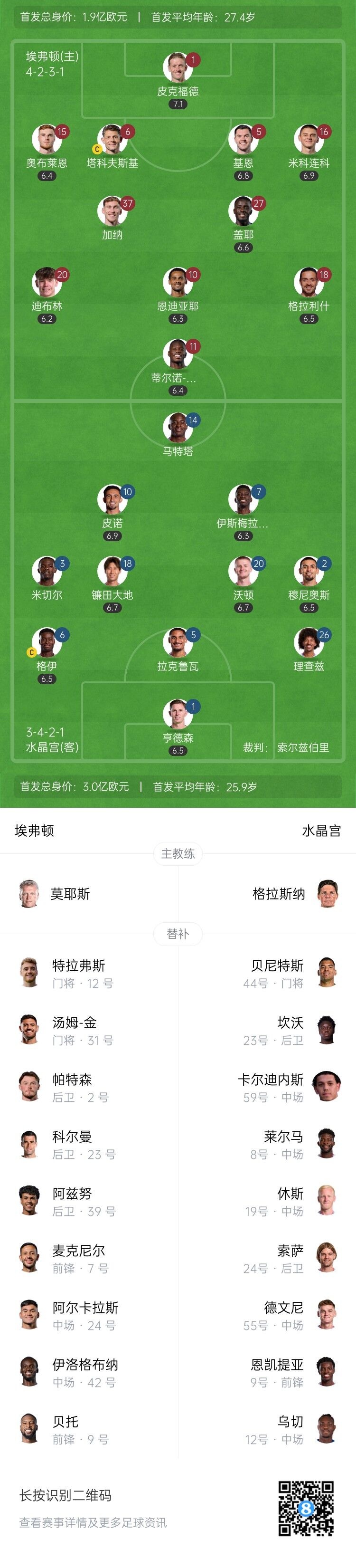 半场-埃弗顿0-1水晶宫 皮克福德屡献出色 抢救 穆尼奥斯破门
