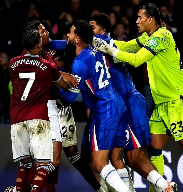 赛事 第95分钟,在一次边界线 球的争夺中,西汉姆联翼锋阿达玛·特拉奥雷与切尔西后场球员马克·库库雷利亚发生剧烈 身体接触。特拉奥雷直接将库库雷利亚推出了场外,后者在地上滚翻 后站起,双方随即顶牛。切尔西前场球员若昂·佩德罗第一时间上前为队友出头,推开了特拉奥雷,这一举动瞬间点燃了火药桶。