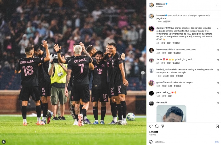 连场2射1传!梅西更新社媒:全队都表现出色,再添3分
