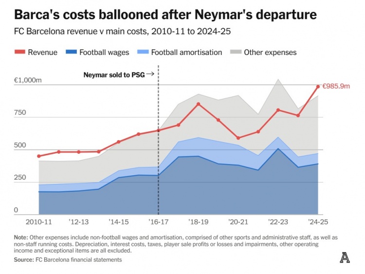 内马尔离开后,巴萨的开支急剧增加