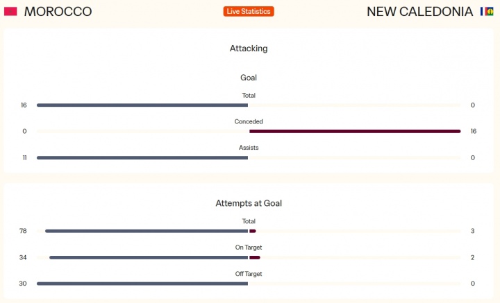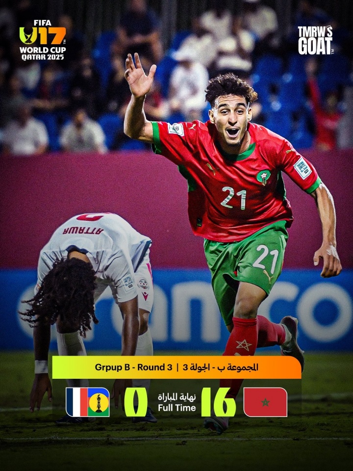11月09日讯 2025卡塔尔U17世界杯赛 B组第3轮,摩洛哥U17以16-0狂胜新喀里多尼亚U17,3战1胜2负排名小组第3。