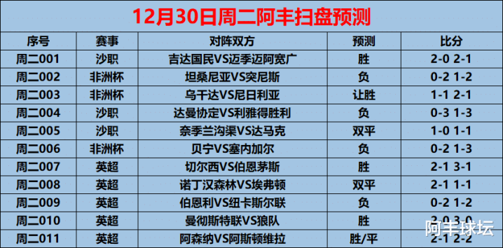 世界杯揭幕战 12/30周二赛事前瞻: 英超: 切尔西VS伯恩茅斯(内附11场预测)
